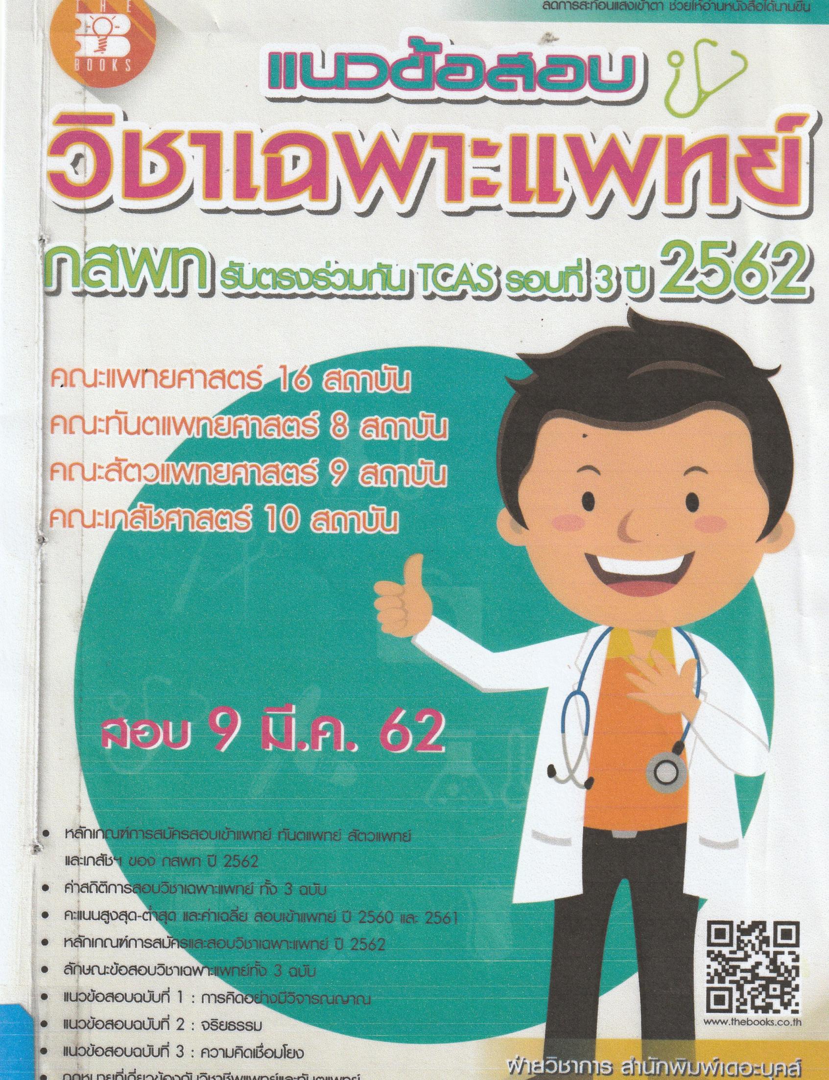 แนวข้อสอบวิชาเฉพาะแพทย์ กสพท รับตรงร่วมกัน TCAS ปี2562